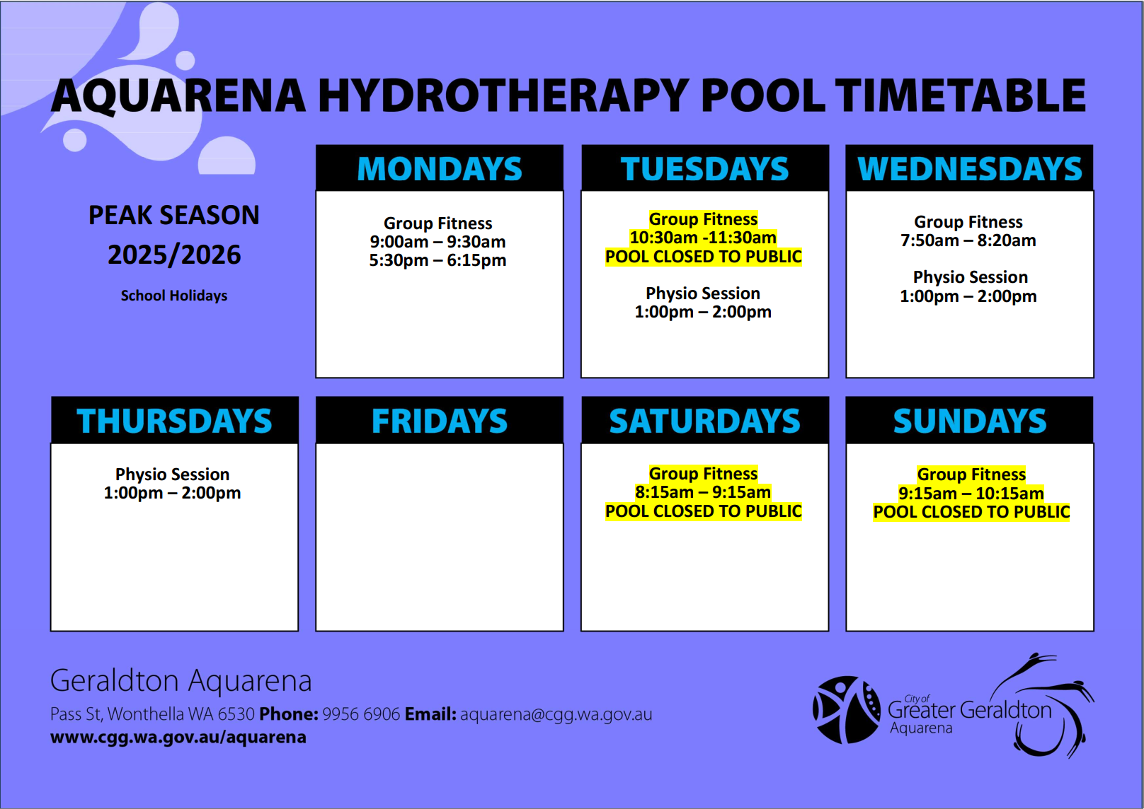 Every Friday (during school terms) any time from 9am - 11am we have toys and music available for parents and caregivers to have some fun in the water with their little ones.