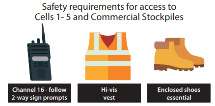 If you need to get out of your vehicle at the Tipping Face (Cells 1-5) or the Commercial Stockpile, please wear: