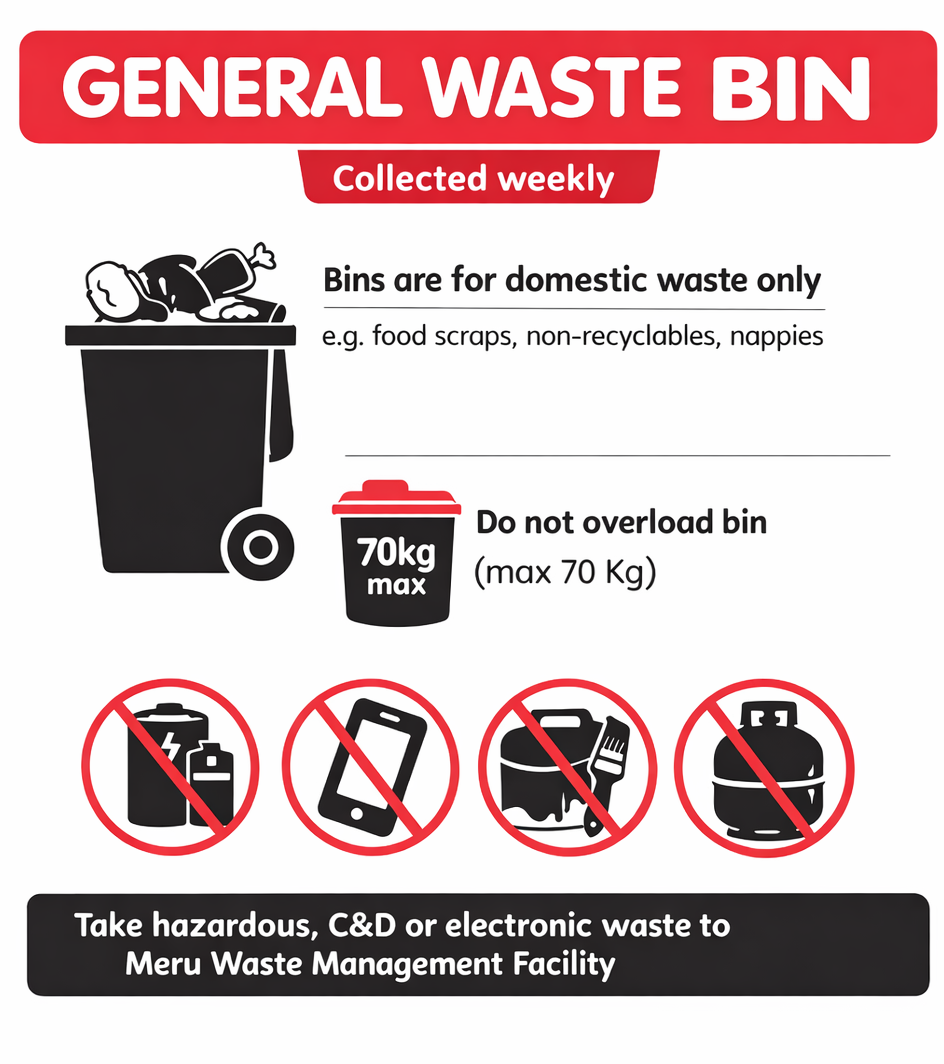 Overloading bins is a leading cause of damage. To ensure this doesn't occur avoid placing heavy items and materials such as bricks, timber and steel in your bin.