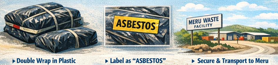 Asbestos must be double wrapped in plastic and marked as asbestos before you arrive at Meru.
