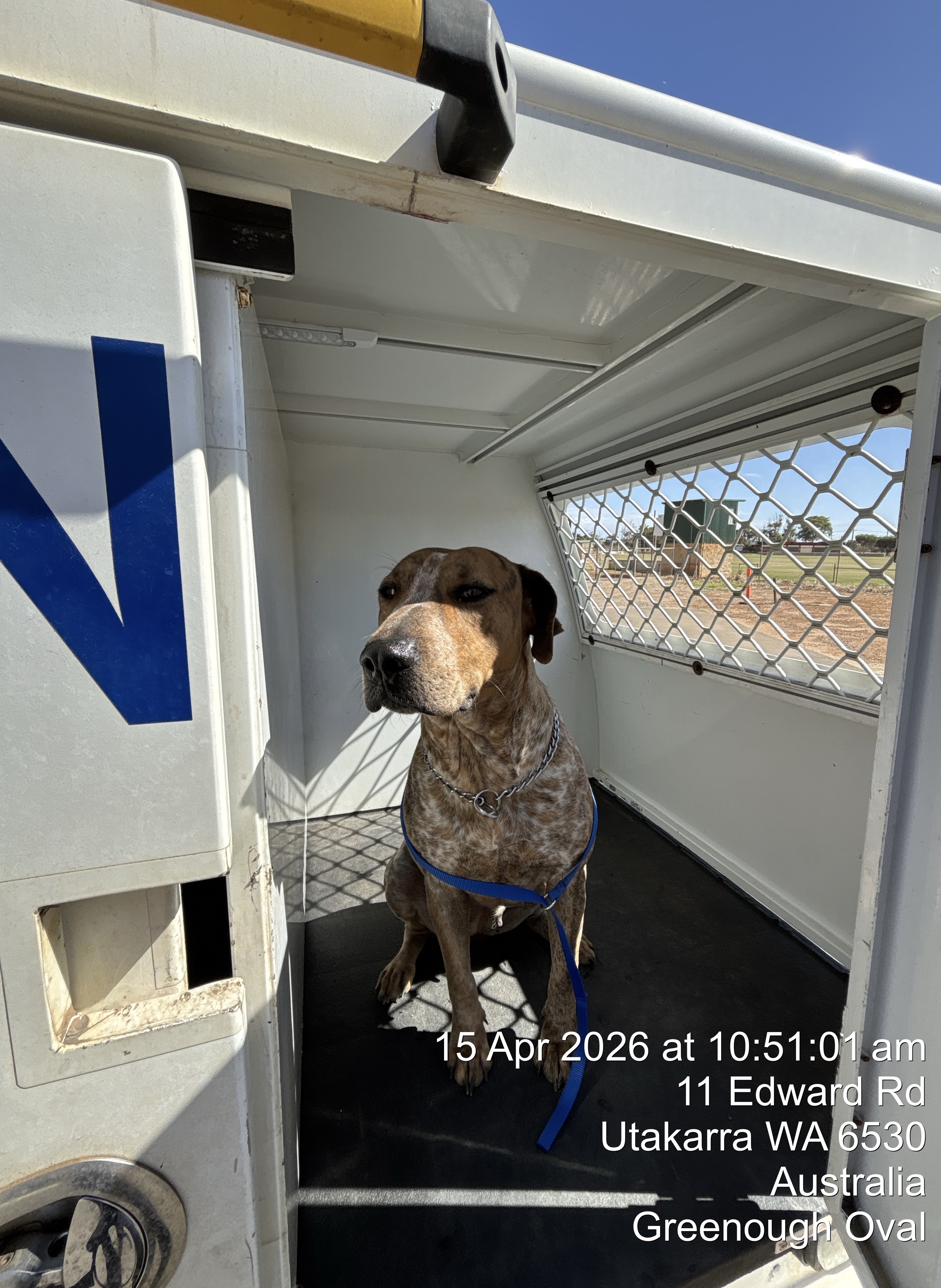 Pound Details Impound Number 19482 Cage Number AMF Date In 15 April 2026 Time In 12:16 PM Breed Large Mixed Breed (Dog) Colour Brindle Sex Female Other Details No Microchip or ID Area Found Joshua Way, Karloo Pound Details Impound Number 19481 Cage Number Cat 9 Date In 15 April 2026 Time In 11:18 AM Breed Domestic Kitten (Cat) Colour Grey & White Sex Male Other Details No microchip or identification Area Found Adelaide Street, Waggrakine Pound Details Impound Number 19480 Cage Number AMF Date In 15 April 2026 Time In 10:57 AM Breed Blue Heeler X (Dog) Colour Red & White Sex Female Other Details Area Found Eastward Road Utakkara Pound Details Impound Number 19479 Cage Number AMF Date In 15 April 2026 Time In 10:10 AM Breed Jack Russell X (Dog) Colour White & Tan Sex Male Other Details No microchip no id Area Found Short Mullewa Pound Details Impound Number 19478 Cage Number AMF Date In 15 April 2026 Time In 10:08 AM Breed Chihuahua X (Dog) Colour White & Tan Sex Male Other Details No microchip no id Area Found Short Mullewa Pound Details Impound Number 19477 Cage Number AMF Date In 14 April 2026 Time In 4:31 PM Breed Staffy X (Dog) Colour Tri Coloured Sex Male Other Details Microchipped, Expired Registration Area Found Petchell Street, Rangeway Pound Details Impound Number 19476 Cage Number V4 Date In 14 April 2026 Time In 2:52 PM Breed Terrier (Dog) Colour Black & White Sex Female Other Details Microchipped and Registered Area Found Caprice Road Geraldton Pound Details Impound Number 19474 Cage Number Cat 4 Date In 14 April 2026 Time In 10:16 AM Breed Domestic Short Haired (Cat) Colour Black & Cream Sex Male Other Details Area Found Brede St, Geraldton Pound Details Impound Number 19471 Cage Number Cat 5 Date In 14 April 2026 Time In 8:45 AM Breed Domestic Medium Haired (Cat) Colour Grey & Cream Sex Unknown Other Details Area Found Cassia St Rangeway Pound Details Impound Number 19456 Cage Number amf Date In 11 April 2026 Time In 10:10 AM Breed Bull Arab X (Dog) Colour Black Sex Female Other Details Microchipped, Expired registration Area Found Still Water Ave Drummonds Cove Was this page helpful? How can we improve this page? Email Address*This field is required. * Required Field.* Please enter a valid Email Address Type the code from the image: Do not fill this textbox.
