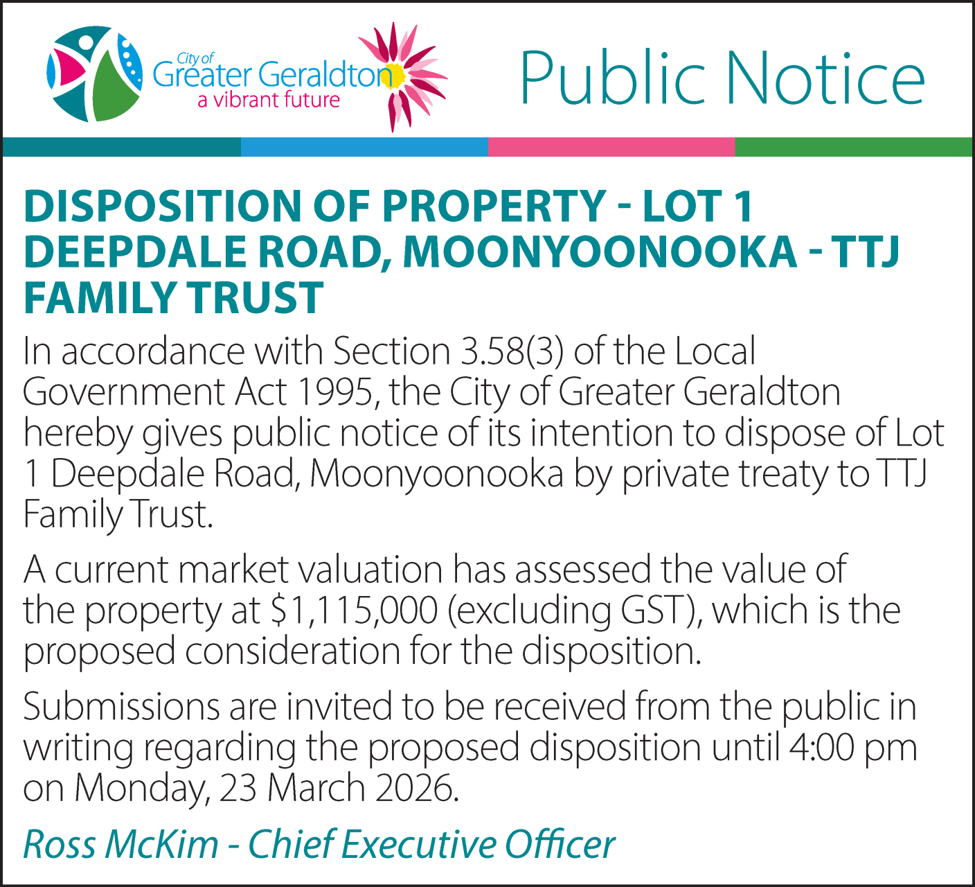 Disposition of Property - Lot 1 Deepdale Road, Moonyoonooka - TTJ Family Trust Published on Tuesday, 3 March 2026 at 4:00:00 PM Documents 6x2 DoP Lot 1 Deepdale Rd Back to All Items