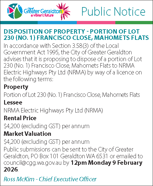 Disposition of property - portion of lot 230 (no. 1) Francisco Close, Mahomets Flats Published on Wednesday, 21 January 2026 at 12:19:01 PM Back to All Items