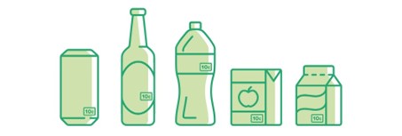- Containers are recycled (metal and plastic).