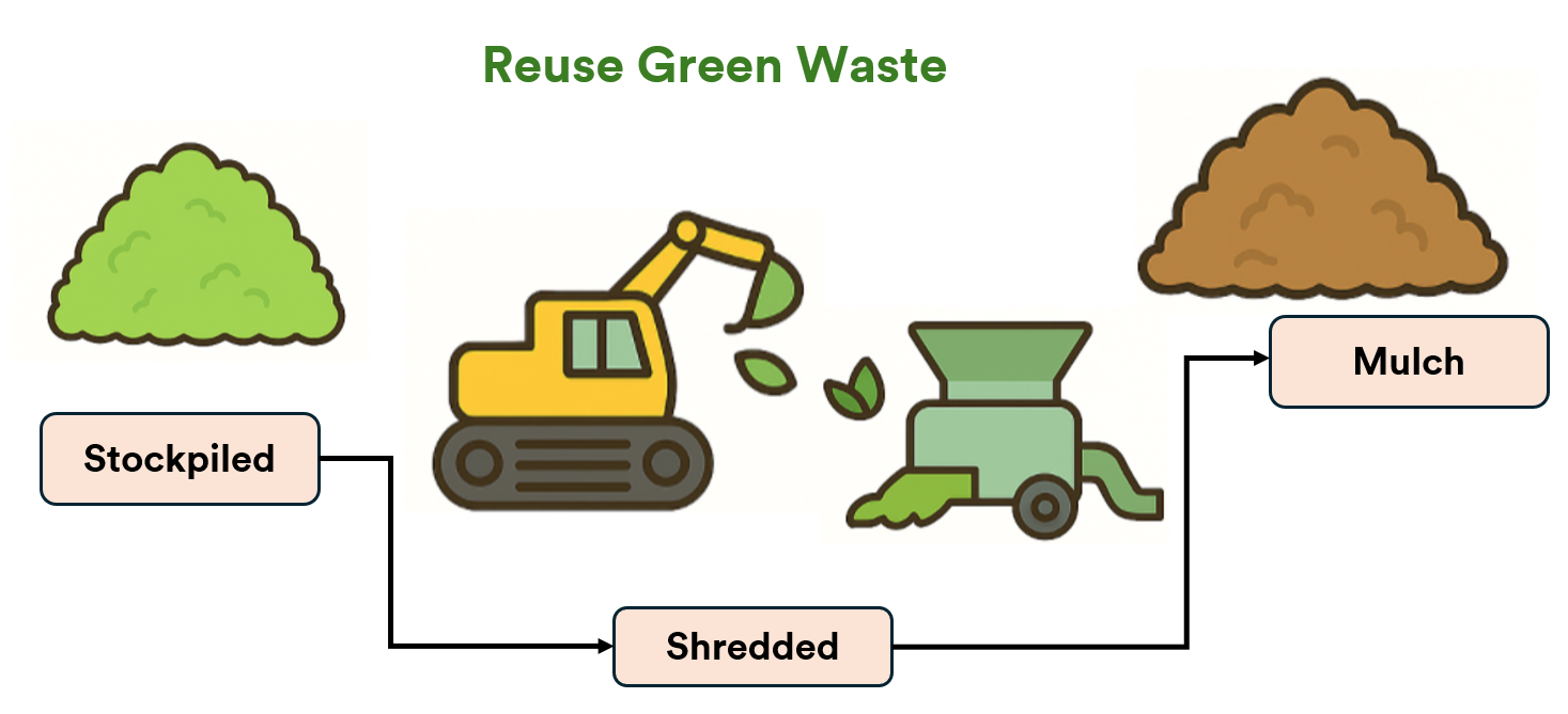Clean green waste is turned into mulch which is free for residents.