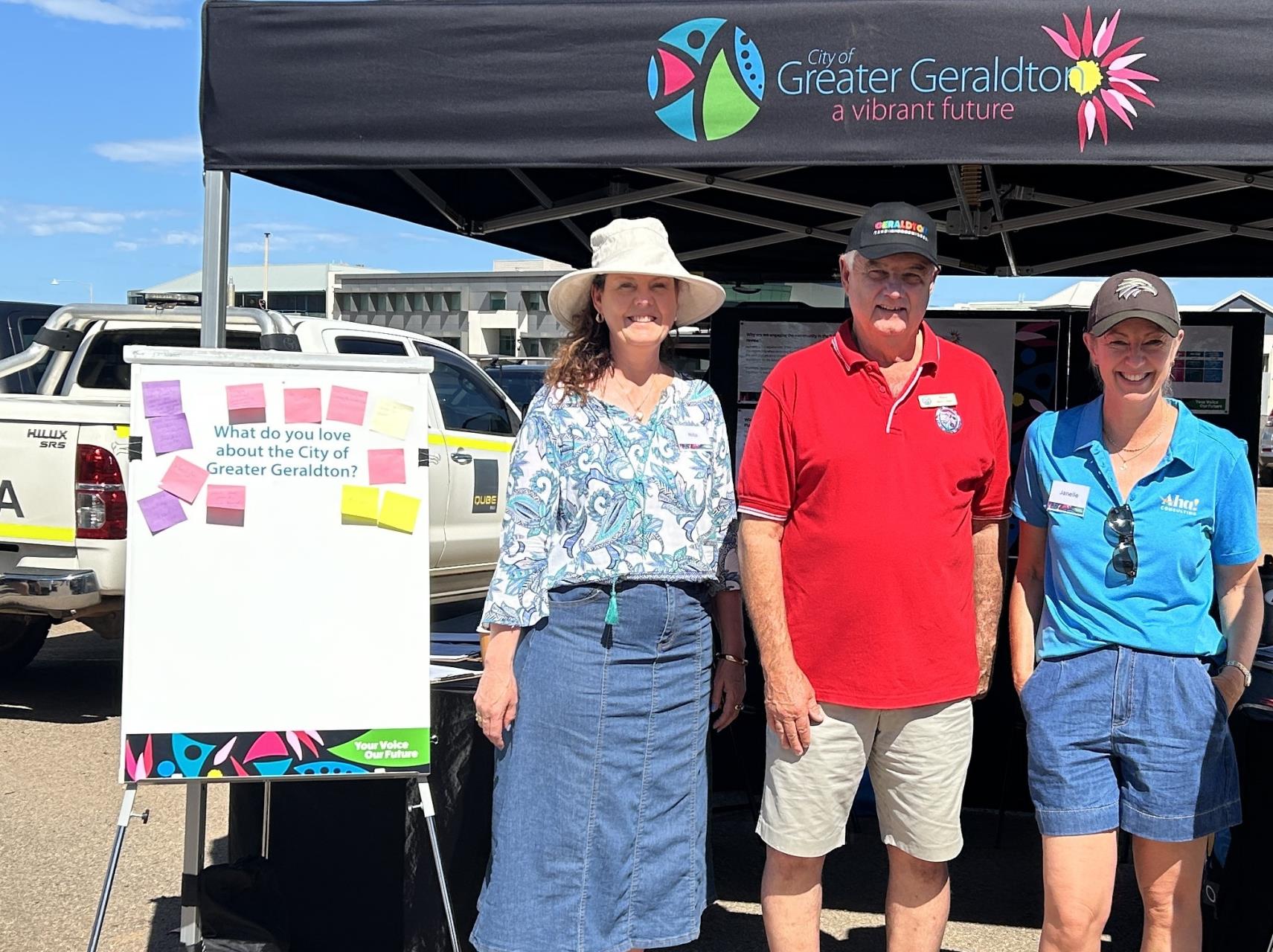 Photo: City of Greater Geraldton Mayor Jerry Clune (middle) and the Your Voice Our Future team - City Chief Financial Officer Nita Jane and Aha Consulting's Janelle Easthope